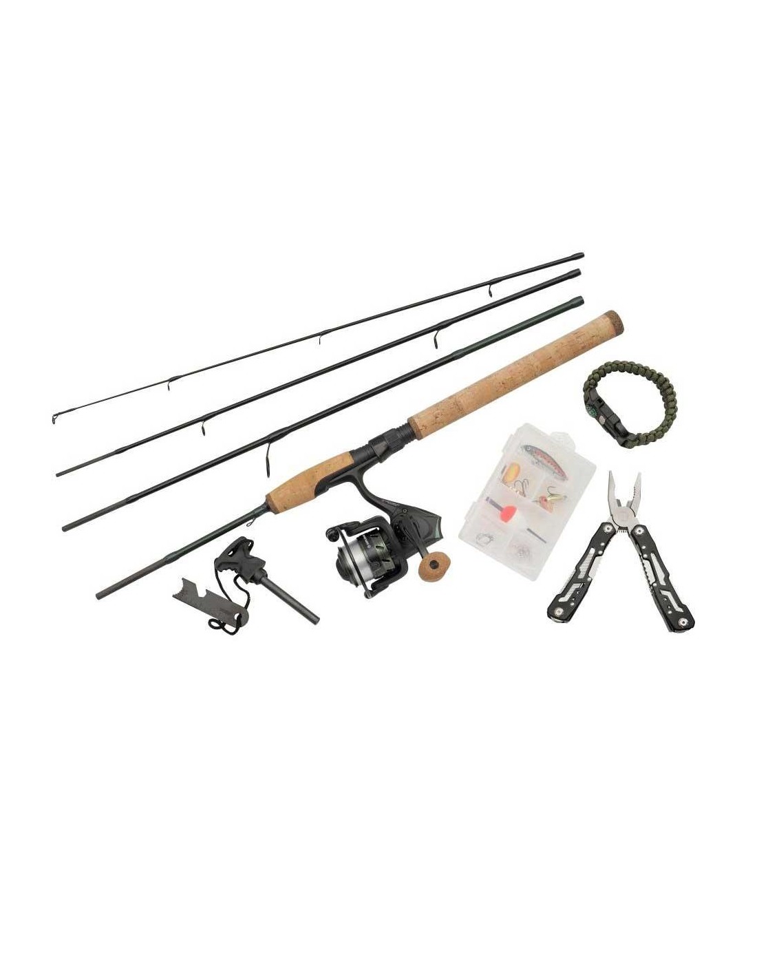 Il pesce pescato può essere preparato con il multiutensile (coltello) in dotazione e il fuoco può essere creato con l'apposito accessorio.