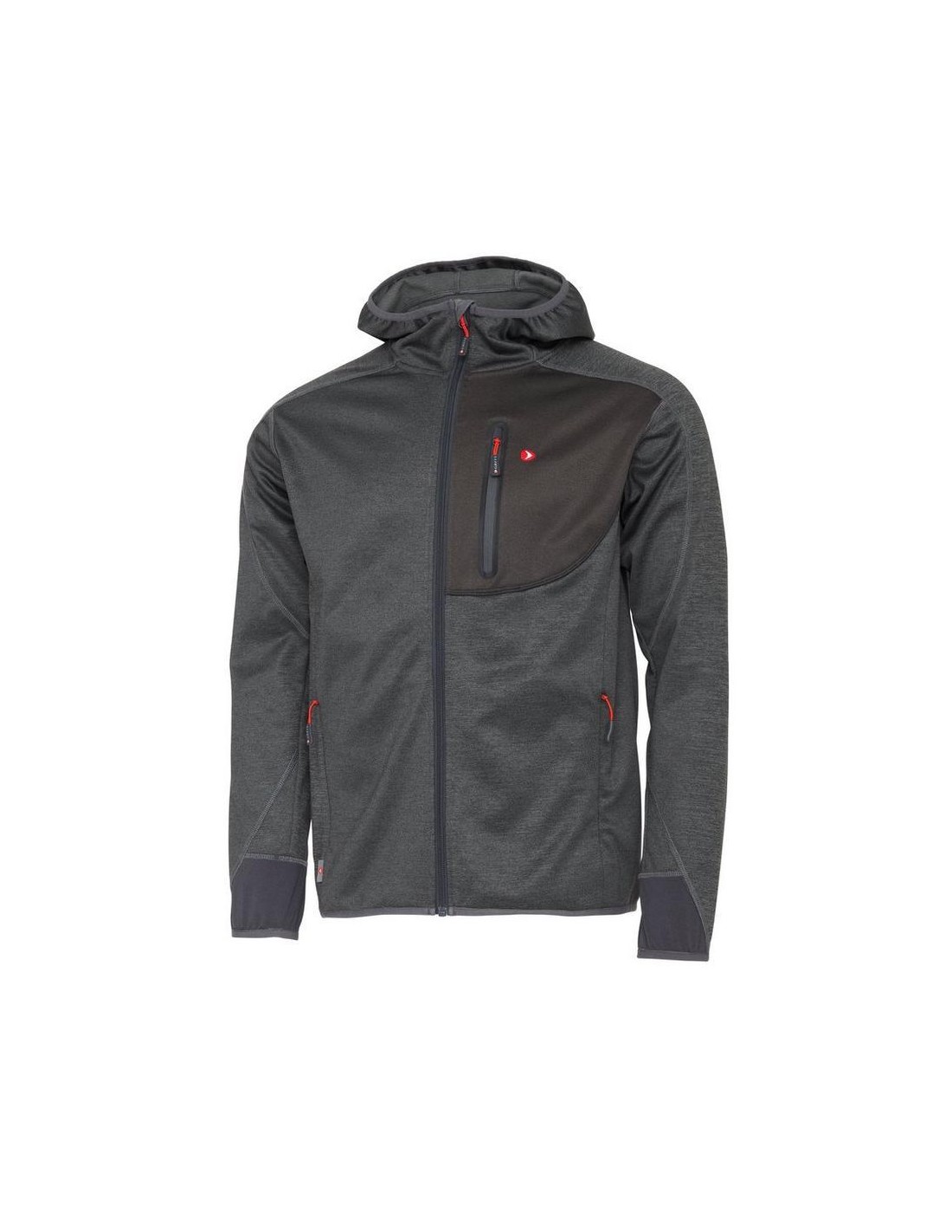 The stretch, moisture-wicking fabric effectively manages sweat and dries quickly to keep you comfortable throughout the day. The tight fitted hood helps block wind, while the articulated ergonomic fit ensures maximum freedom of movement. A zippered chest pocket provides secure storage for small essentials. The PFAS-free water-repellent coating adds extra protection against light rain and splashes.