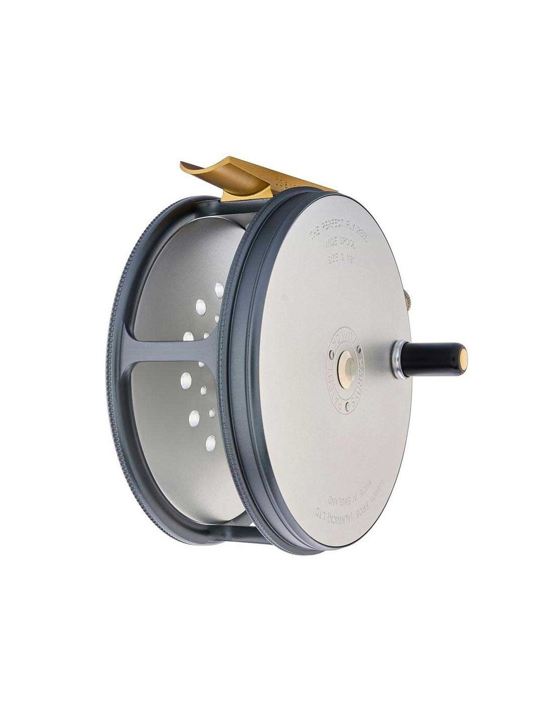 Il guidafilo rotante in ottone lucidato con placcatura nickel brillante aiuta a distribuire la coda in modo uniforme, mentre la bobina wide spool garantisce più capacità e una gestione ottimale di backing e code moderne. La struttura è ricavata dal pieno in alluminio con perno monoblocco in ottone navale, completata da una finitura anodizzata two tone che riprende lo stile classico dei Perfect degli anni ’30.