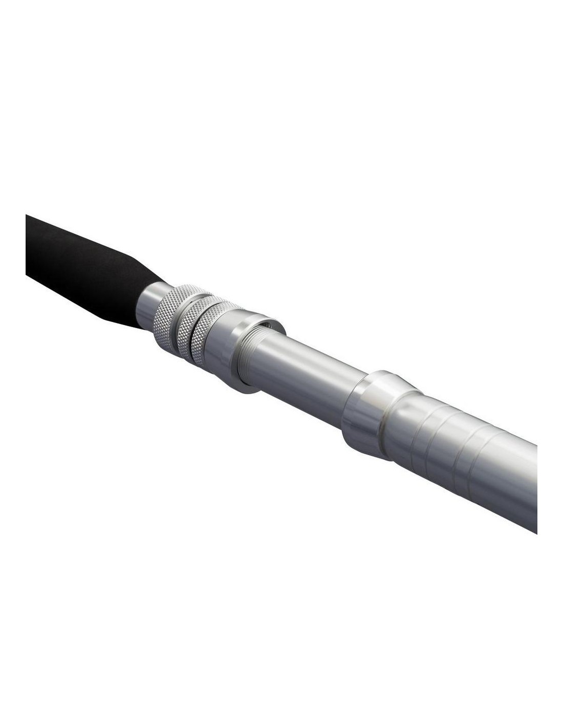 Le impugnature anteriori in EVA assicurano comfort e presa sicura anche durante combattimenti prolungati, mentre il calcio curvo in alluminio garantisce stabilità nel portacanna e maggiore controllo sotto sforzo.