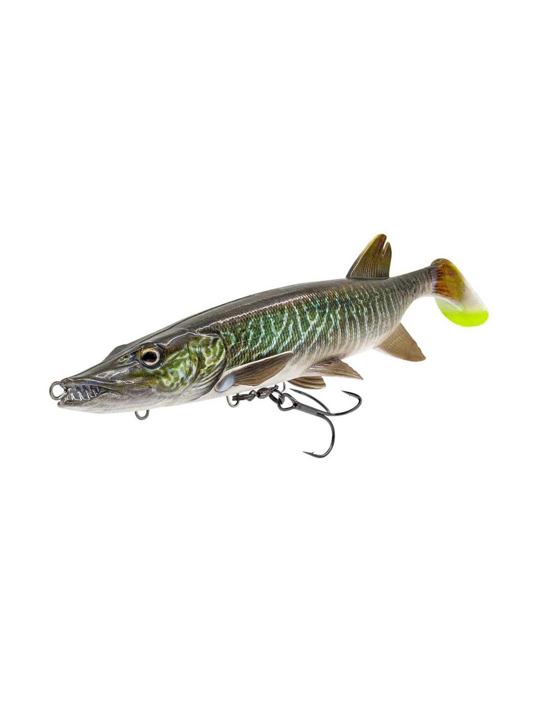 I piccoli lucci sono la preda preferita dei grandi lucci in certe stagioni, e questi artificiali super realistici saranno letali al momento giusto. L'ancoretta montata sul ventre è fissata a uno swivel, rendendo molto più difficile per il luccio liberarsi dell'amo durante il combattimento. Il paddle tail conferisce all'artificiale un movimento sinuoso e il rattling nella coda emette click provocatori per attirare i predatori curiosi.