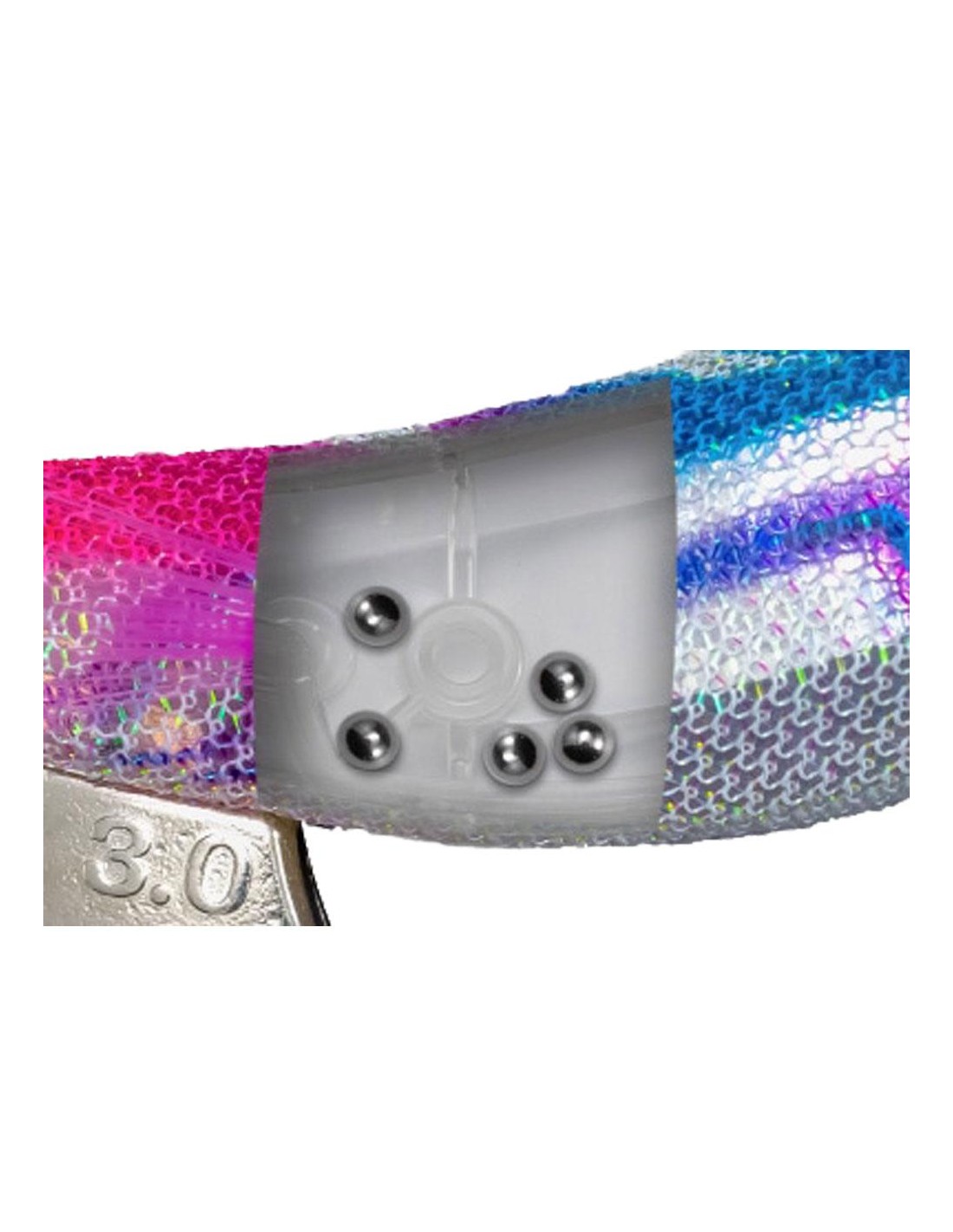 Sulla schiena monta un aletta che funge da lente riflettente e aumenta i flash di luce duranti le fasi di pesca oltre che creare delle turbolenze intorno all'esca stessa che creano interesse da parte del predatore.